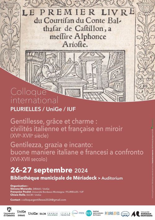 Gentillesse, grâce et charme : civilités italienne et française en miroir (XVIe-XVIIe siècle)Colloque international en deux volets organisé par Simona Morando (DIRAAS – UniGe), Chiara Rolla (DLCM -Uni...