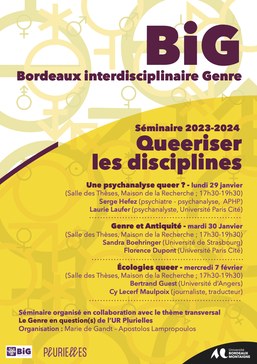 Séminaire BIG 2023-2024 Organisé en collaboration avec le thème transversal “Le Genre en Question(s)” de l'UR Plurielles